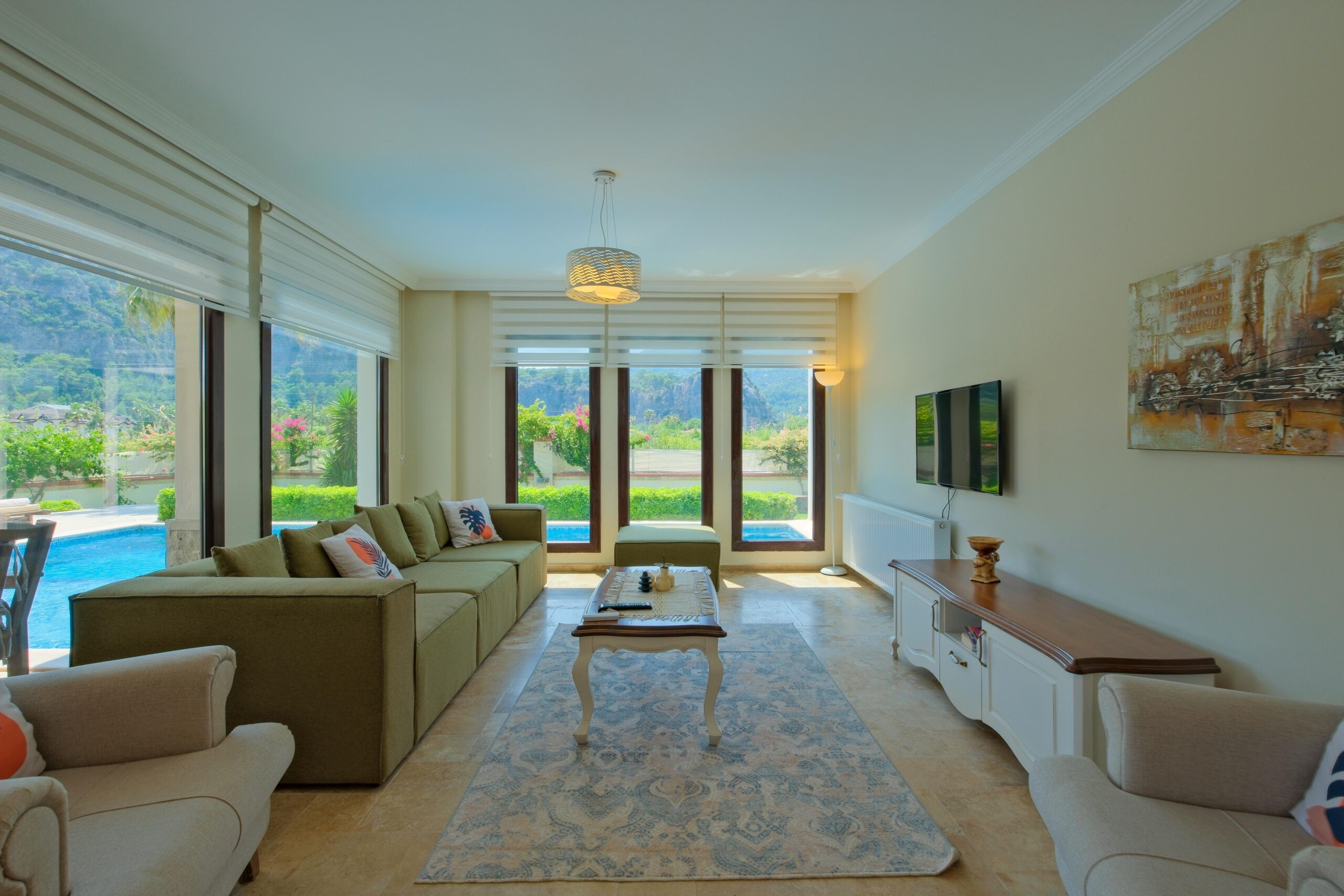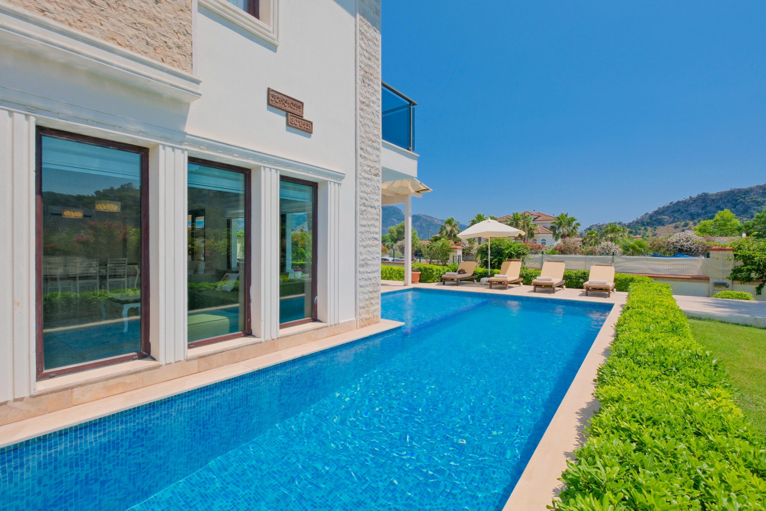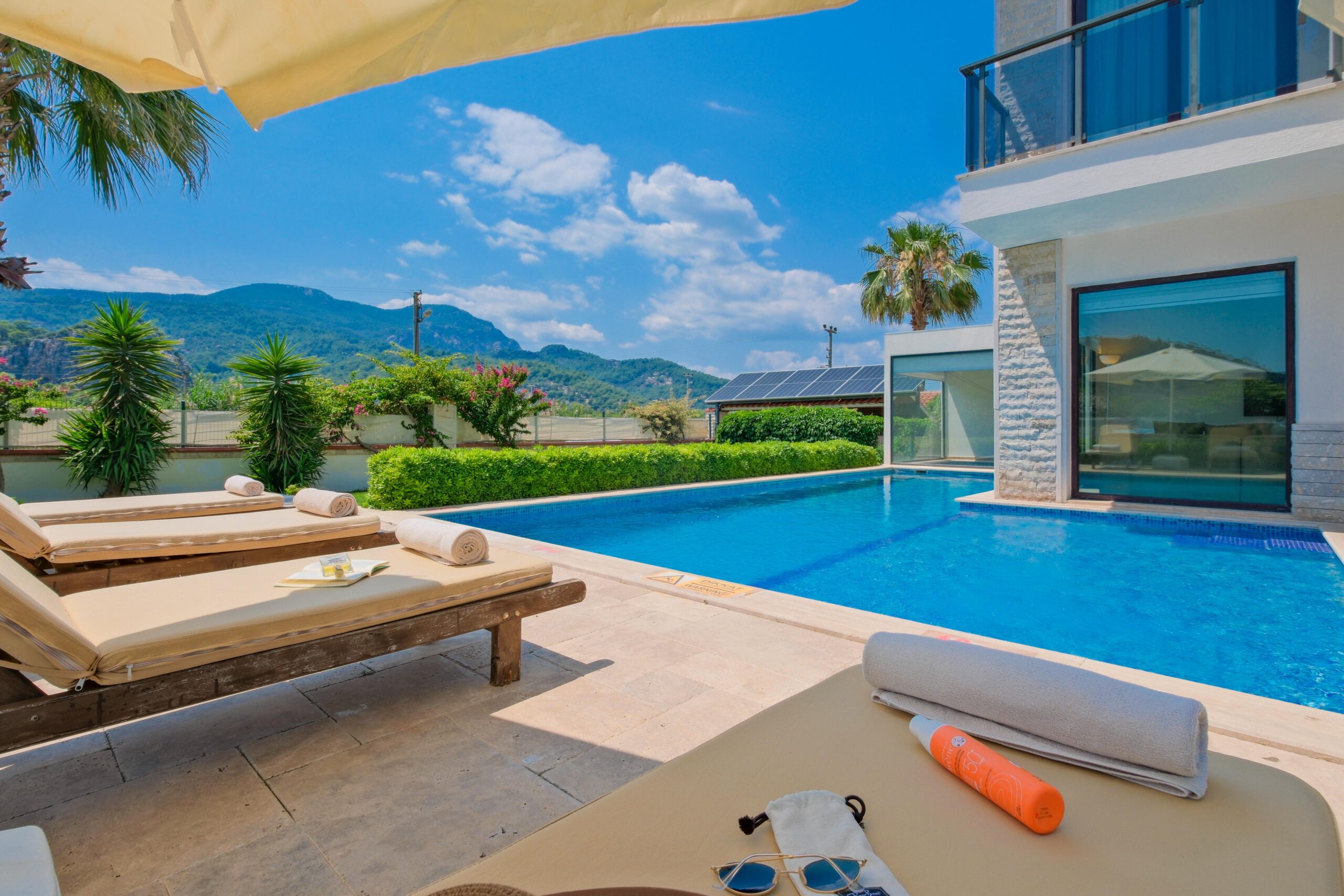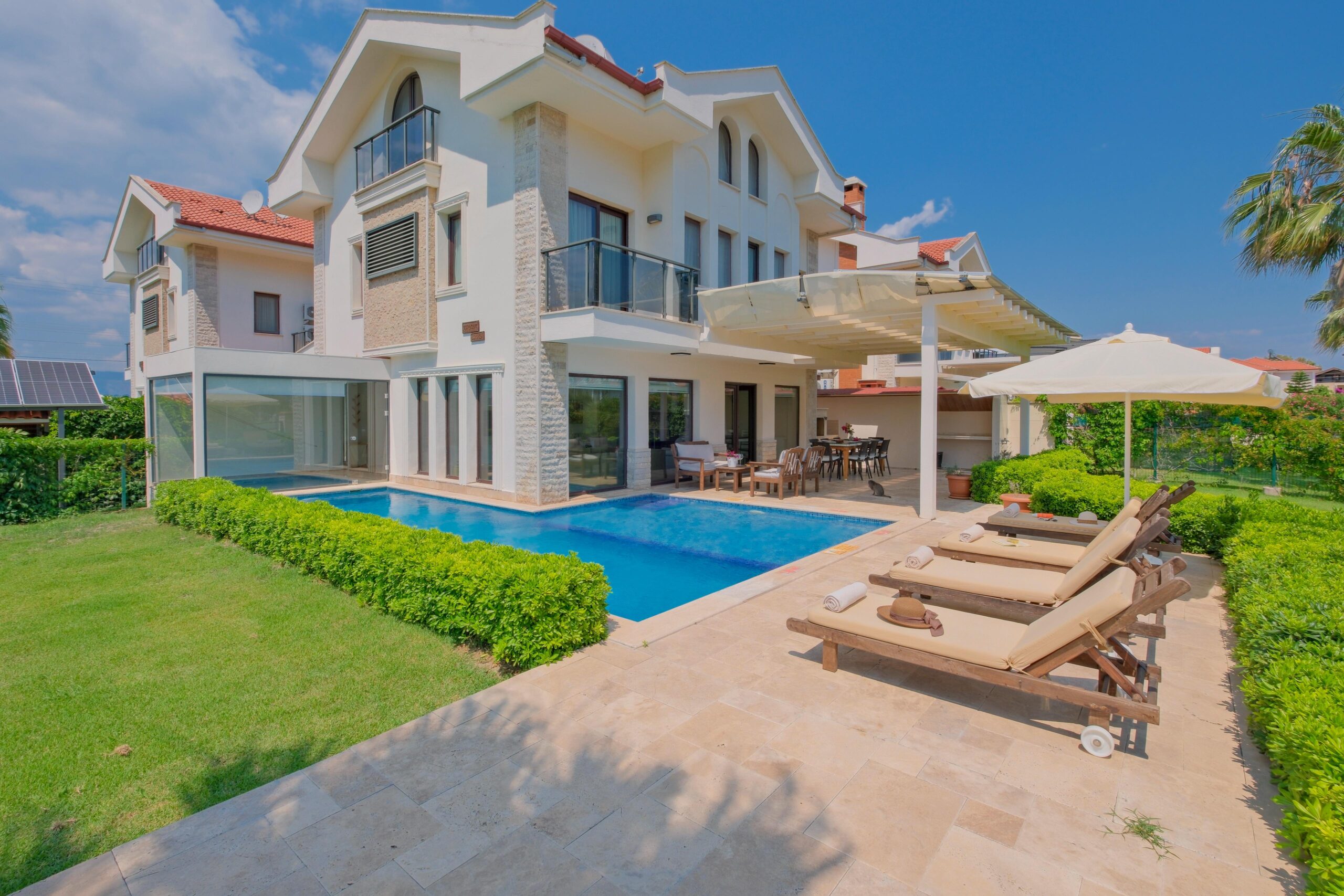 A stylish 5-bedroom, 5-bathroom villa located in the heart of Dalyan. Designed for comfort and elegance, it offers spacious living areas, a modern kitchen, and luxurious bathrooms. The private garden and pool create a tranquil escape while still being centrally located. An ideal choice for a relaxing stay in Dalyan.
