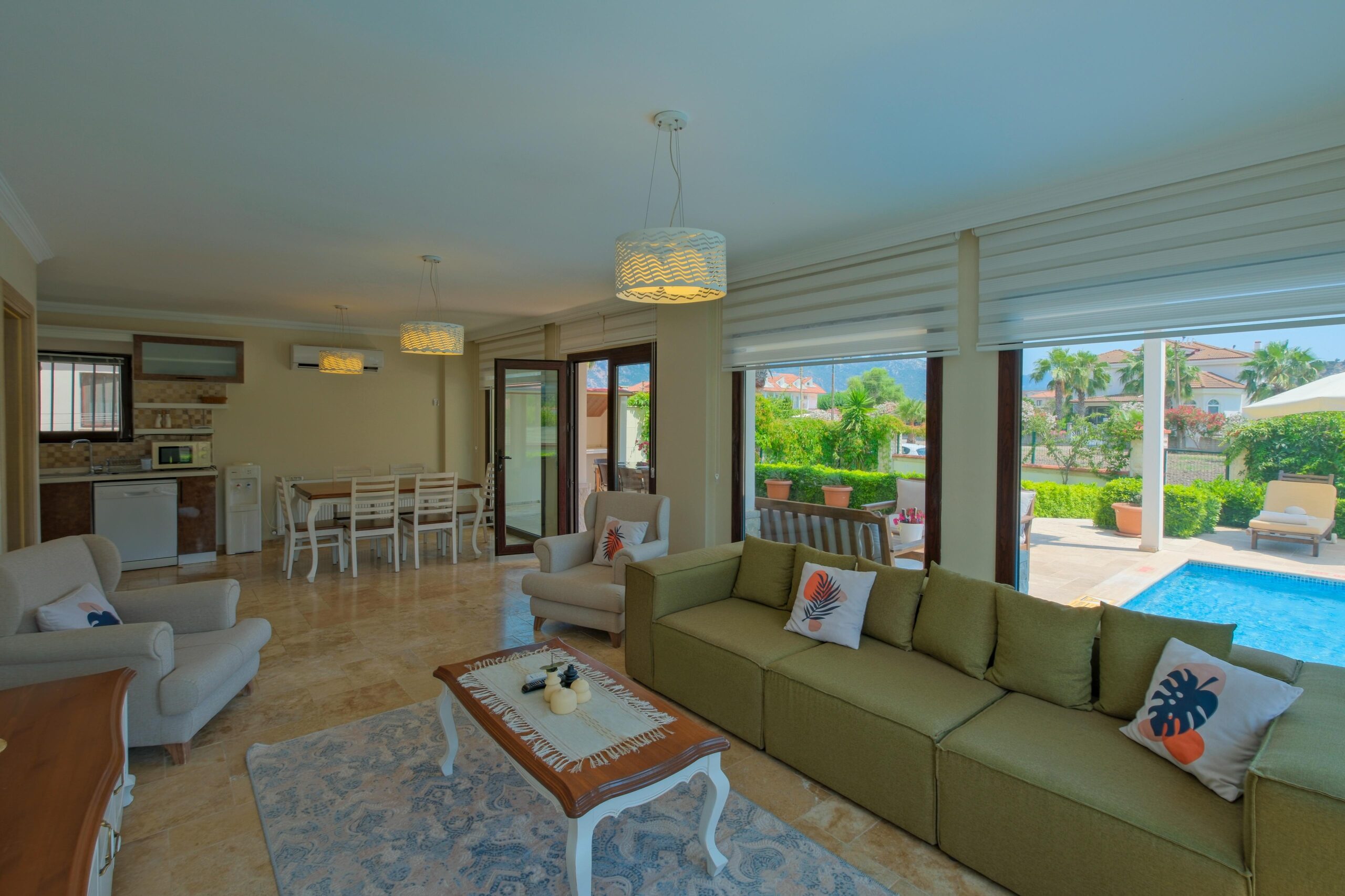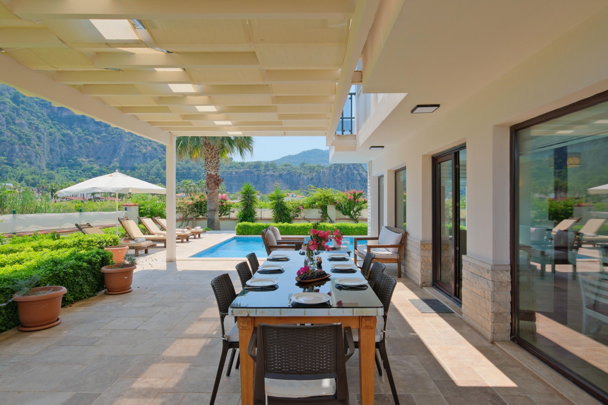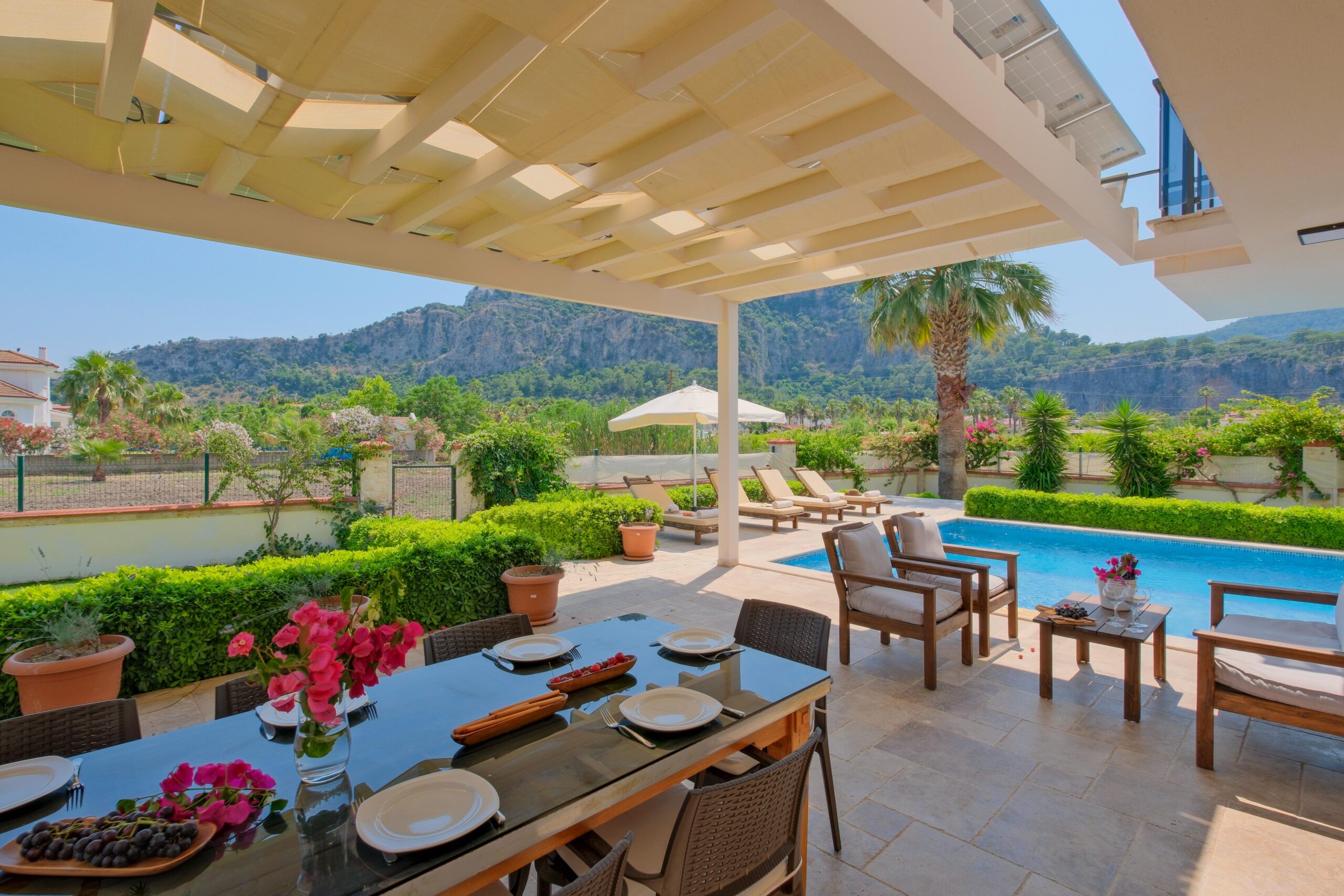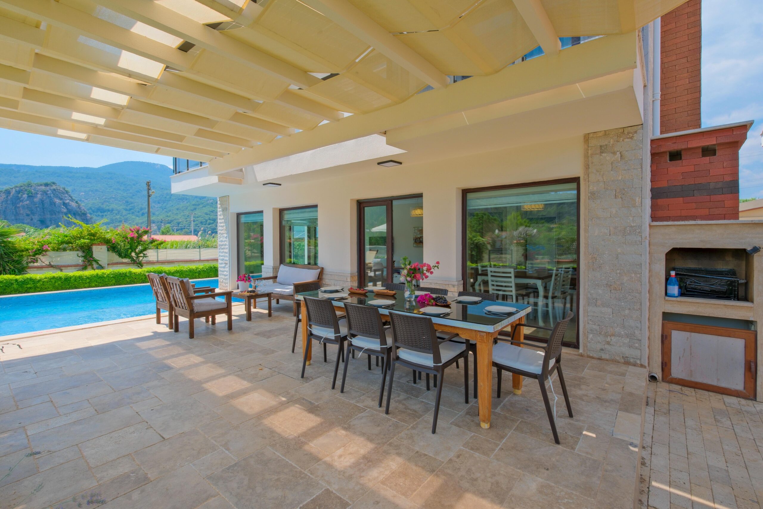 A stylish 5-bedroom, 5-bathroom villa located in the heart of Dalyan. Designed for comfort and elegance, it offers spacious living areas, a modern kitchen, and luxurious bathrooms. The private garden and pool create a tranquil escape while still being centrally located. An ideal choice for a relaxing stay in Dalyan.