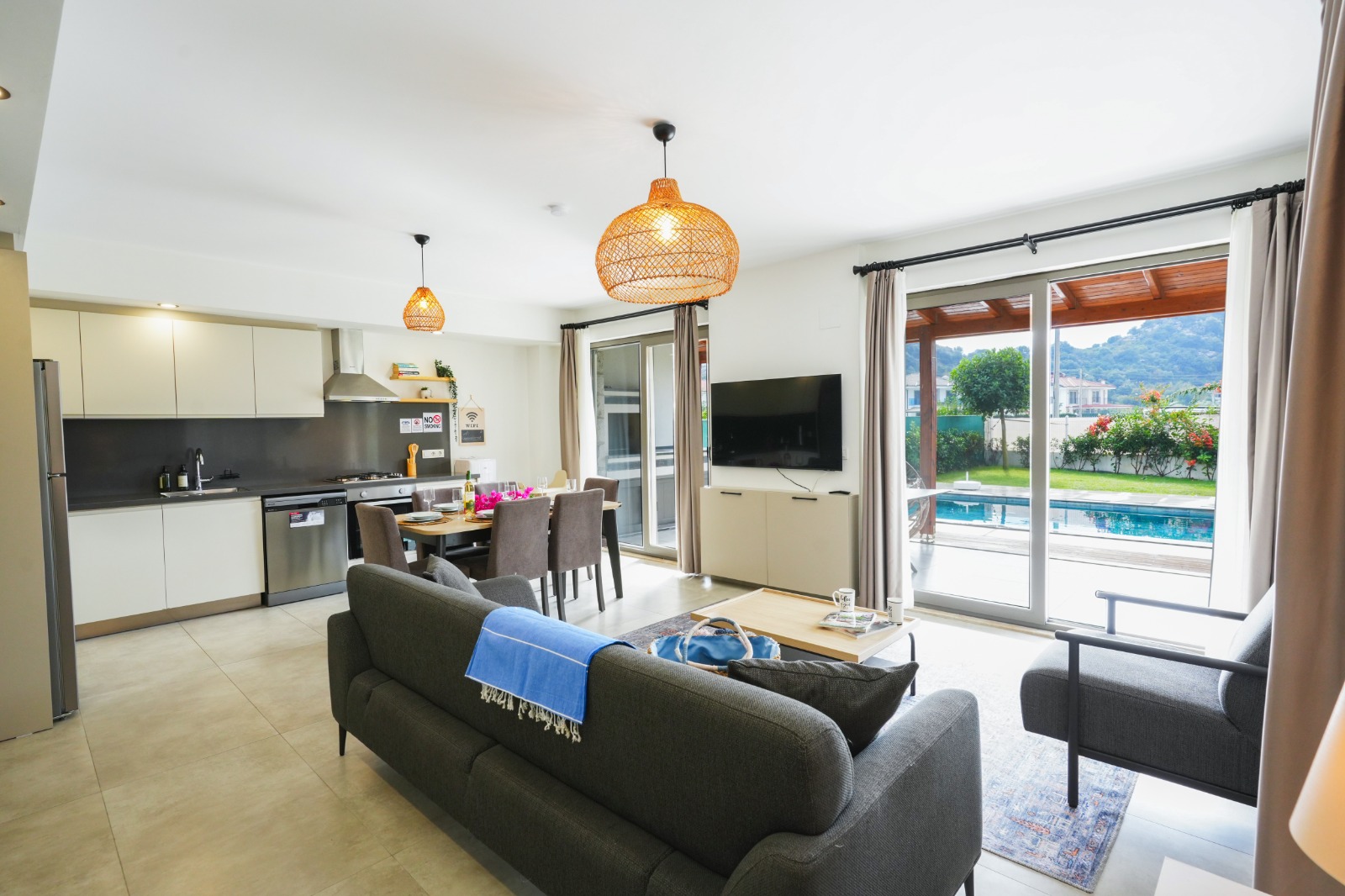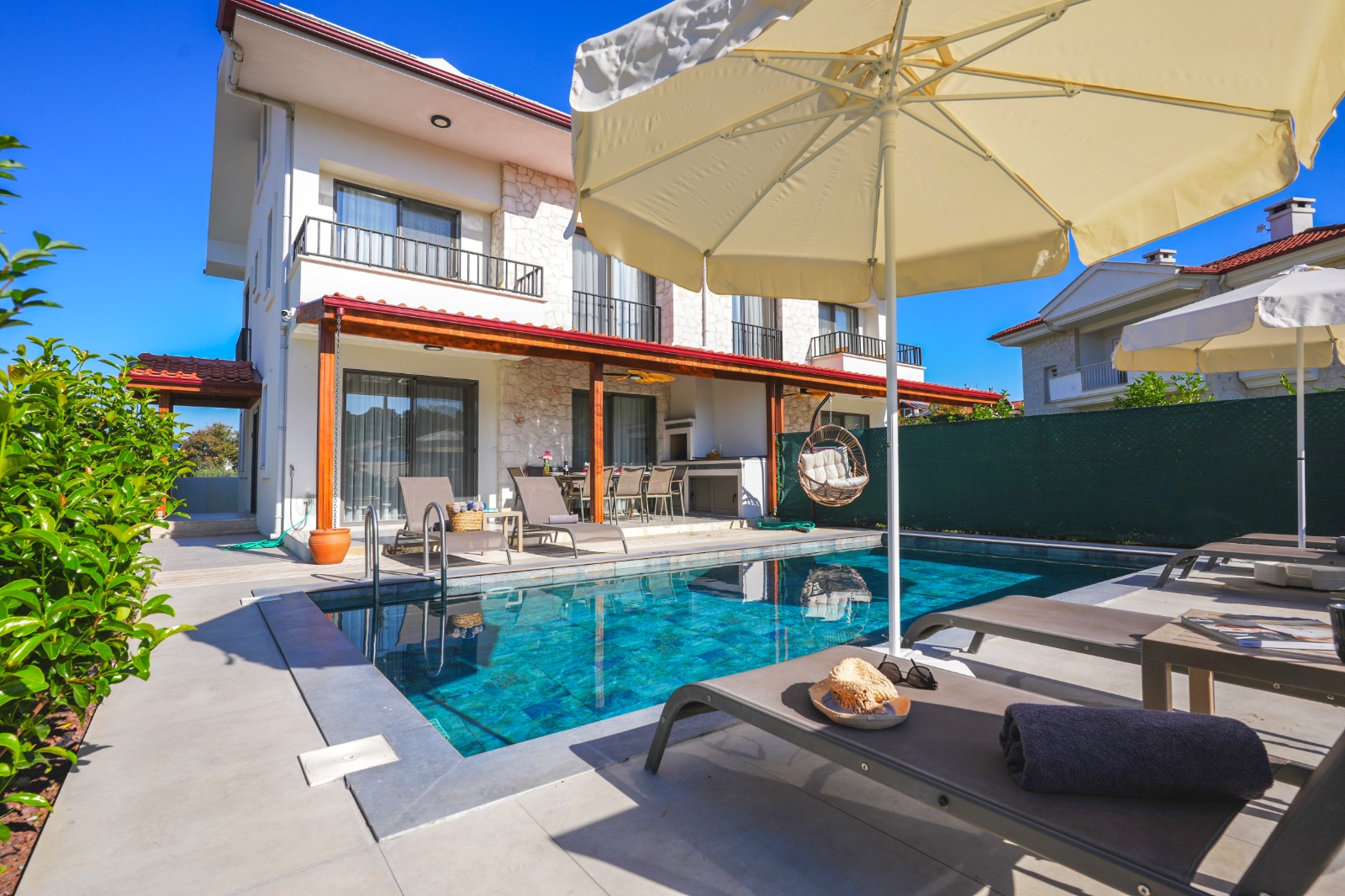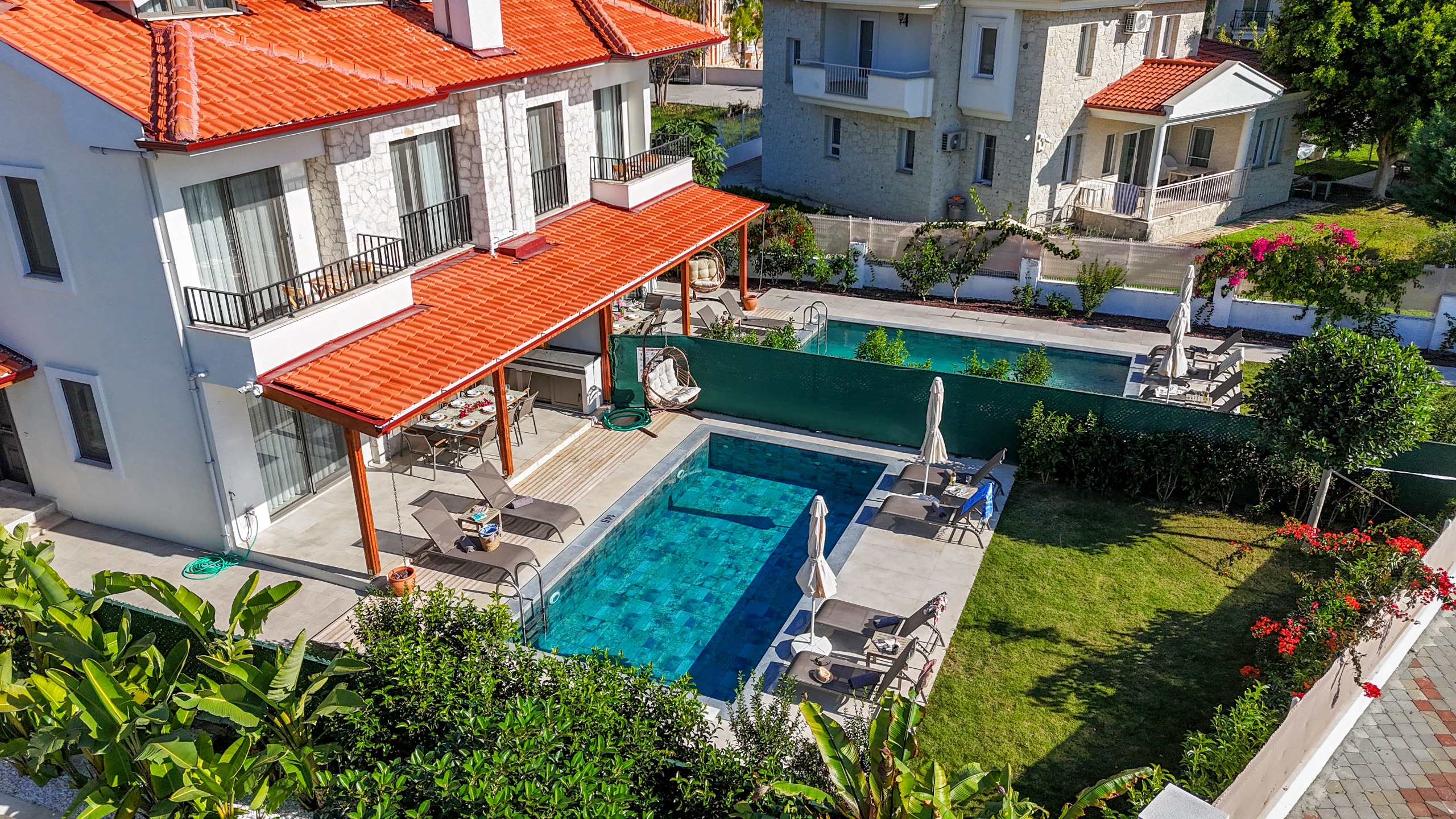 This stunning villa features five spacious bedrooms, each with its own private ensuite bathroom for ultimate comfort. The bright, open-plan living area flows perfectly into a private garden and pool, making it ideal for families and entertaining. Modern, luxurious, and perfectly designed for a high-end lifestyle.