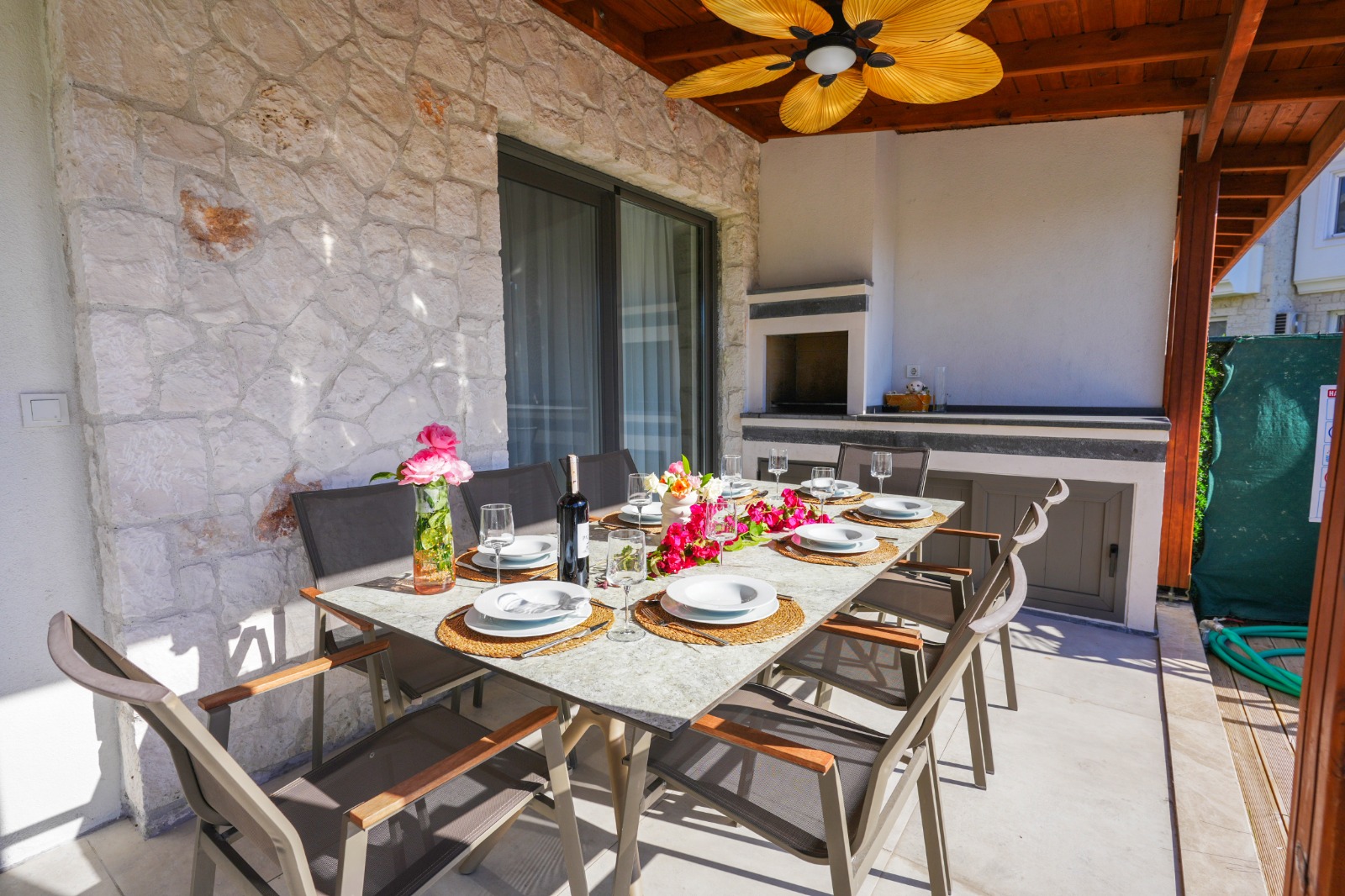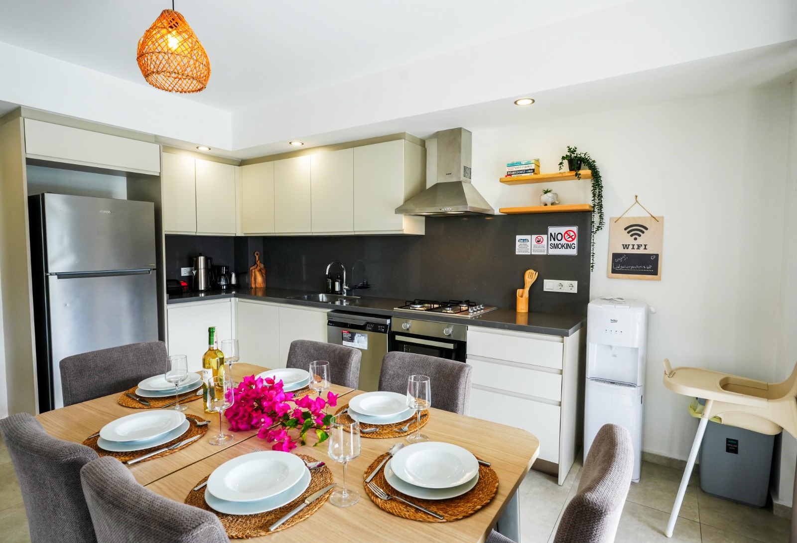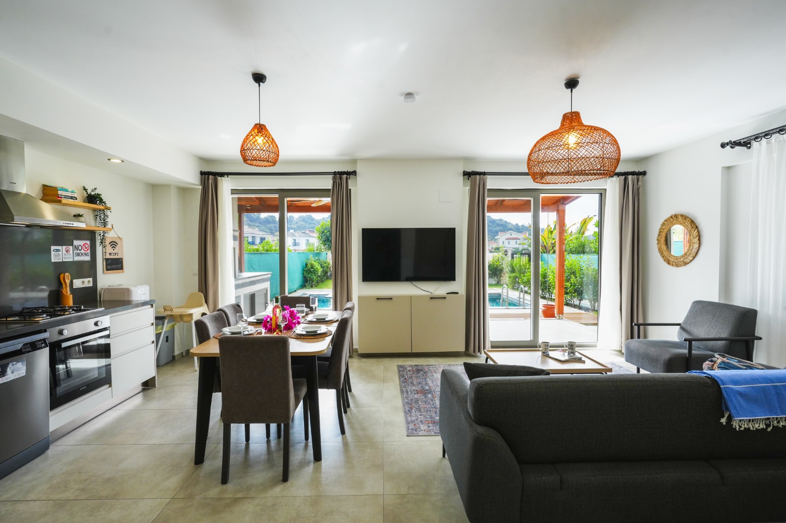 This stunning villa features five spacious bedrooms, each with its own private ensuite bathroom for ultimate comfort. The bright, open-plan living area flows perfectly into a private garden and pool, making it ideal for families and entertaining. Modern, luxurious, and perfectly designed for a high-end lifestyle.
